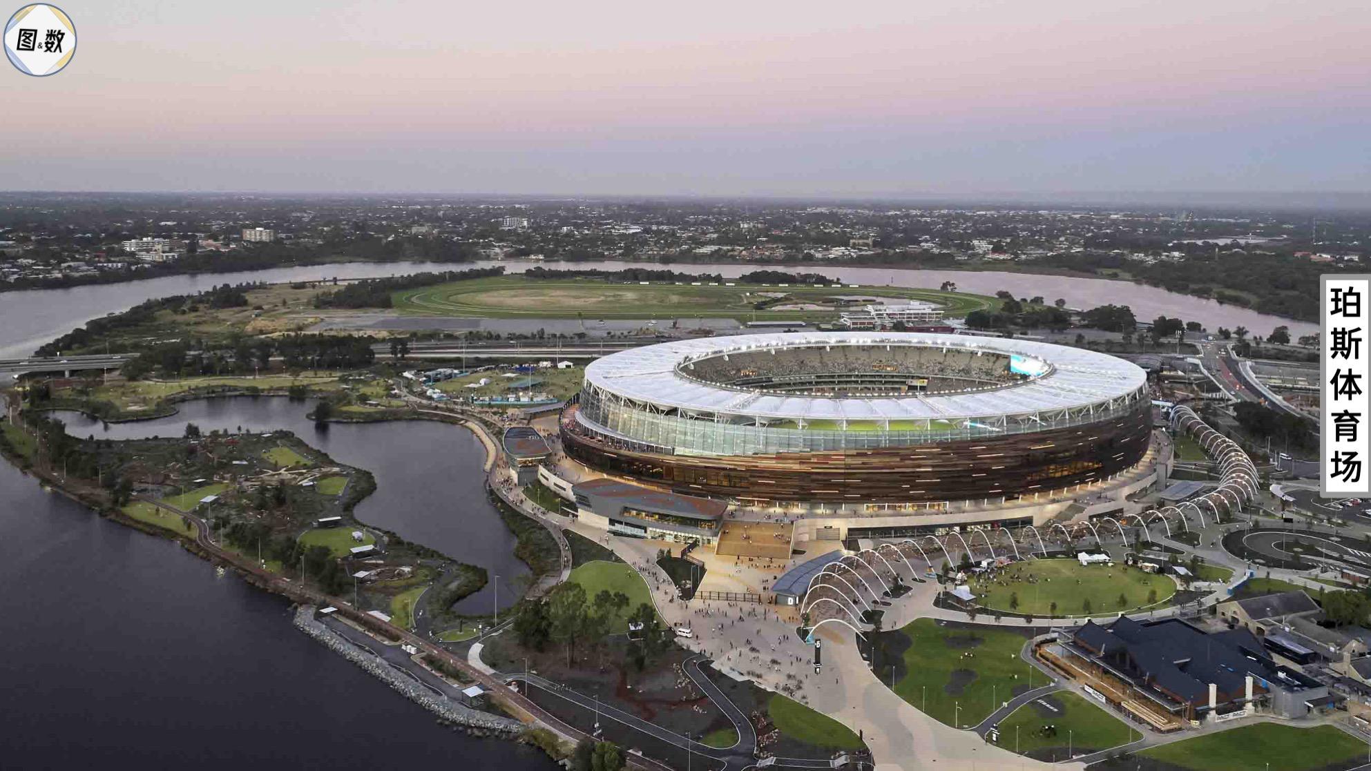 可容纳约6万人的珀斯体育场是一座椭圆形的板球场,它在日常主要进行板球和澳式足球的比赛,澳式足球也被称为澳式橄榄球,每队18人上场比赛,队员众多,因此需要使用更大的椭圆形赛场。